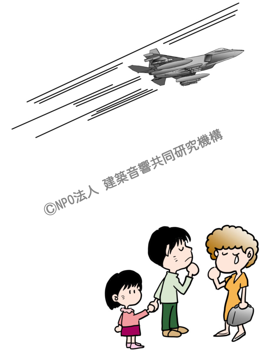 民間航空機に対しては「航空機騒音に係る環境基準」が規定されていますが、遮音設計における室内騒音に関する基準値はありません。
